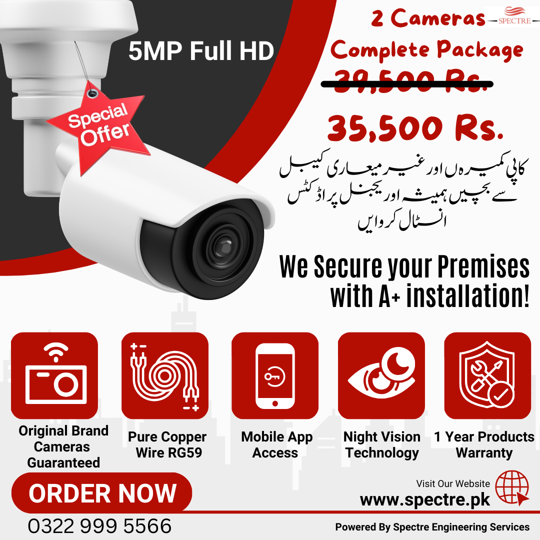 2 CCTV Cameras Complete Package with Installation Includes Following